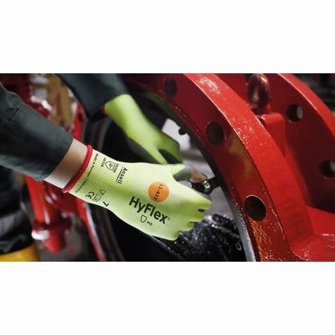 The Ansell HyFlex 11-422 Work Gloves are manufactured from high-performance fibres. As a result, they provide excellent protection against abrasion and cut, and have high tear resistance. The fibres used are also high-visibility, making the gloves suitable for use in environments with low light.