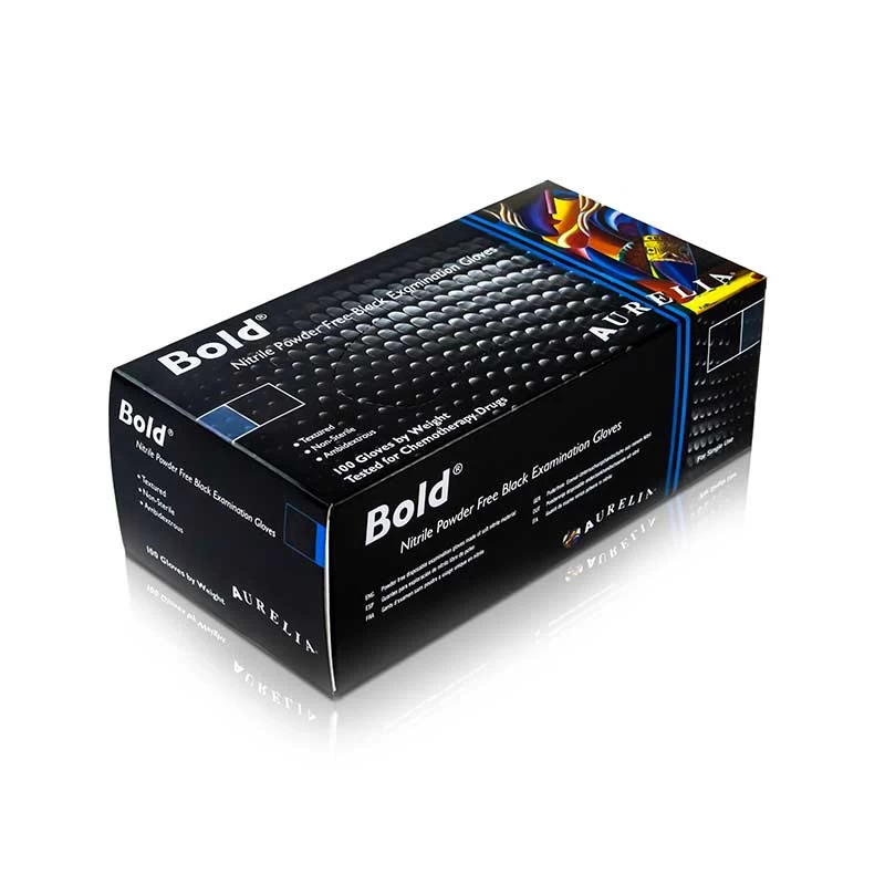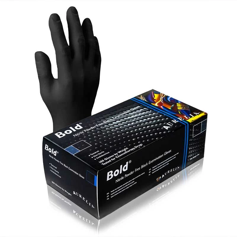 The Aurelia Bold Medical Grade Black Nitrile Gloves are extremely strong, thin disposable gloves that offer better tensile strength than most of their nitrile, vinyl and latex counterparts. While a beaded cuff prevents liquid from entering the gloves and micro-texture ensures grip, the chemical, bacterial and contaminant resistant properties make them a top seller in the care, health, medical, food and dentistry industries.