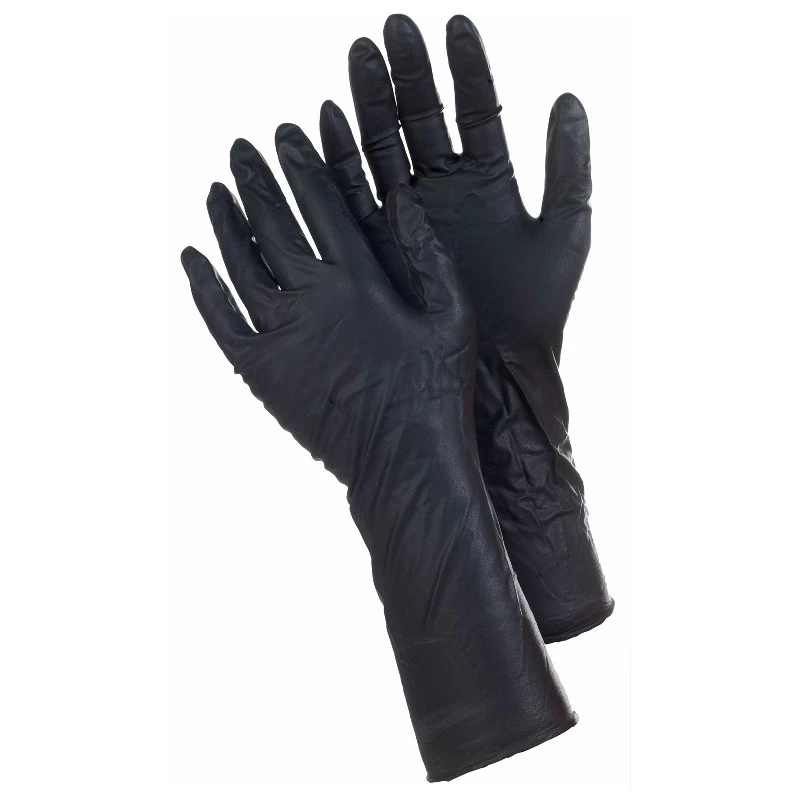 Ejendals Tegera 849 Disposable Long-Cuff Nitrile Gloves feature a longer-than-standard extended cuff for protection against oils, solvents, dirt, grease and a selection of chemicals. Food safe with a waterproof membrane, they’re a great all-rounder for kitchens, cleaners, service industry staff, and hair and beauty workers.