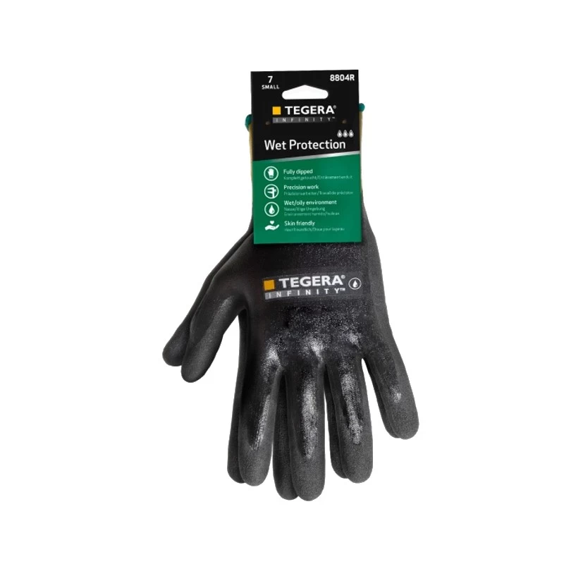 Ejendals Tegera 8804R Gloves use a foam nitrile coating to combine heat and mechanical hazard resistance protection that protects your hands against heated material not exceeding 100°C, abrasions, cuts, tearing and punctures. They also prevent the aggravation and formation of certain skin conditions thanks to their DMFa-free fabric.