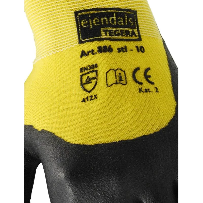The Ejendals Tegera 886 Gloves are supplied in a black/yellow design with a knitwrist cuff for improved comfort.
