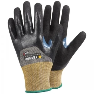 Nitrile is an inexpensive coating that lines the palms and 75% of the back hand side of Ejendals Tegera 8808 Cut-Resistant Gloves. Highly absorbent and grippy, nitrile is a great coating because it absorbs microscopic particles of moisture and oil to improve grip strength and stability.Ā