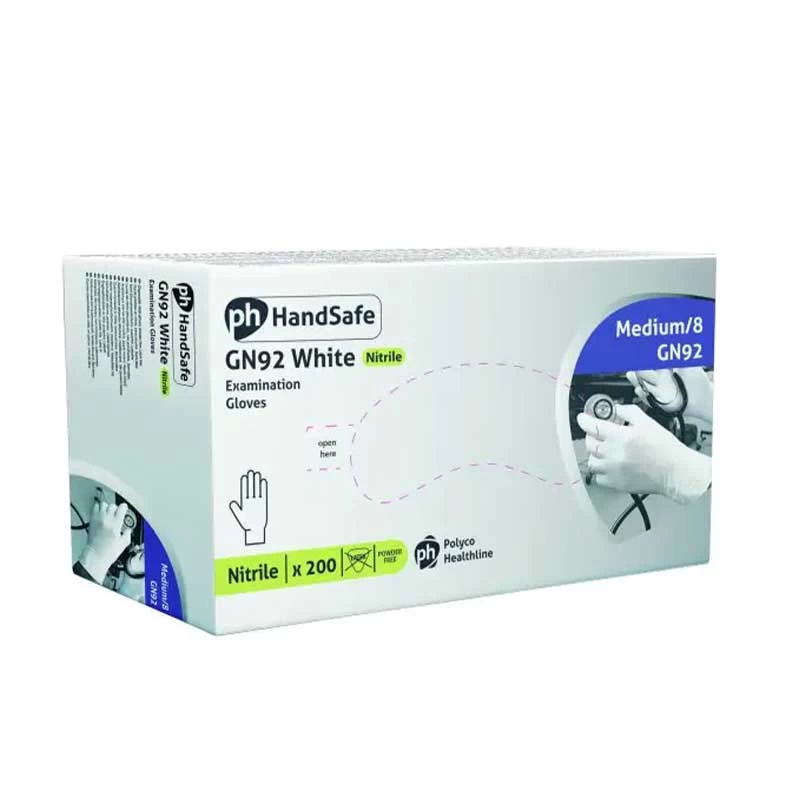 HandSafe GN92 Stretch Powder-Free White Nitrile Examination GLoves
