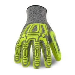 The gloves feature a high-visibility colour scheme. The bright green hi-vis material allows the gloves to be more easily seen, making them more practical for use in darker environments.