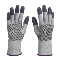 The Dyneema fibre construction of the Kimberly-Clark Professional KleenGuard G60 Purple Nitrile Cut-Resistant Gloves confers an excellent level of cut-resistance and tensile strength. The gloves are ideal for handling sharp materials, and feature a dotted palm for improved grip.