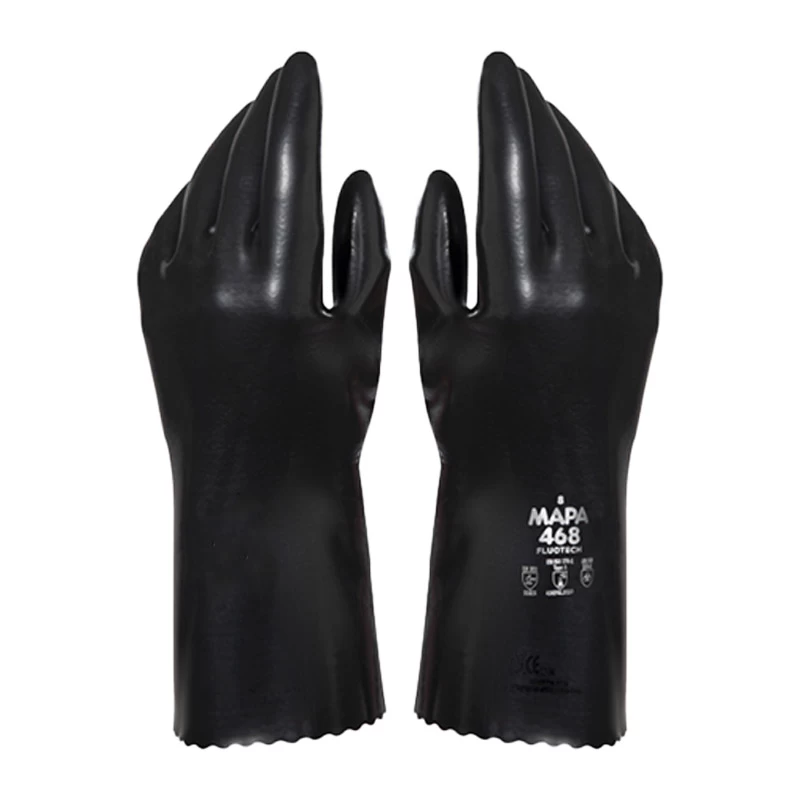 TheĀ Mapa FlouTech 468 Nitrile Chemical-Resistant Gauntlet GlovesĀ offer superb resistance against a wide range of chemicals, pollutants and solvents, ensuring outstanding protection during chemical treatments, degreasing, pollution control, paint manufacture and chemical transportation.