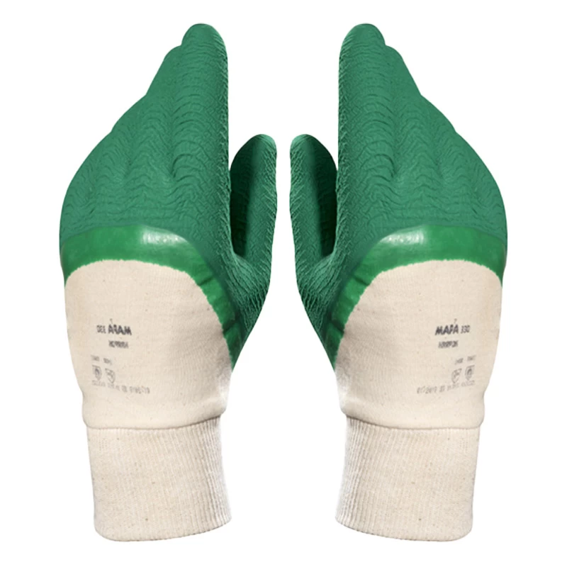 The Mapa 330 Grip Gloves are designed for a wide range of handling work. Their grippy and flexible design means that you can use them both indoors and outdoors, with a durable latex lining offering further protection against coarse surfaces. Suitable industries include: