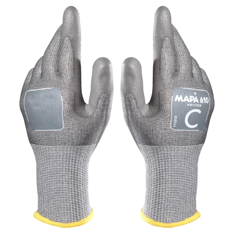 TheĀ Mapa KryTech 610 PU-Coated Cut Level C GlovesĀ offer a superb level of resistance against cuts, while the impressive level of dexterity ensures control during precision handling tasks. These gloves have a focus on comfort, with an anatomical design reducing hand fatigue during use.