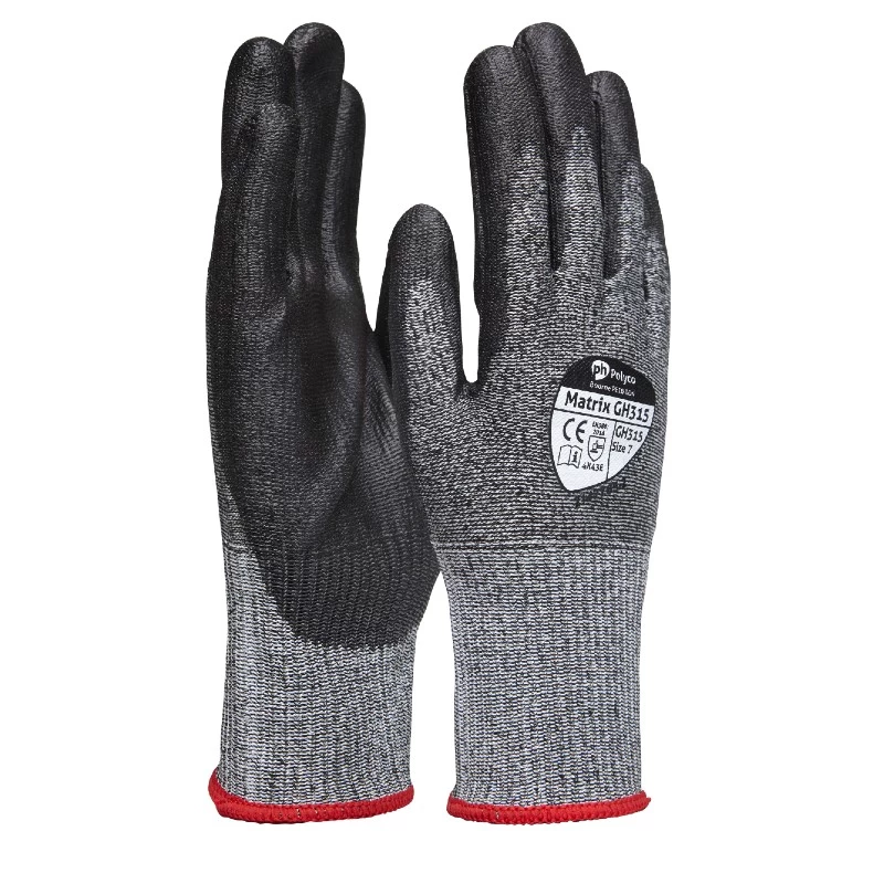 Polyco Matrix GH315 Cut Resistant Gloves offer excellent Level E protection against blades, knives, sharp and serrated edges and sheet metal. Ideal for protecting the hands of construction and building workers, Polyco GH315 Gloves remain inobtrusive despite their protection, enhancing grip, strength and stability all thanks to their robust polyurethane coated palm treatment.