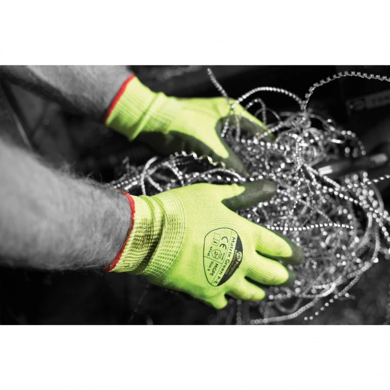 The Polyco MGPE Matrix Cut-Resistant Green P-E Gloves are the gloves to choose for when you require protection that goes one step further, with the dexterous PU design offering exceptional resistance to cuts, abrasion, tears and punctures. Despite their thin, sensitive and dexterous design, these gloves offer serious mechanical protection, making them well suited to working with glass, in mechanics or with barbed wire.