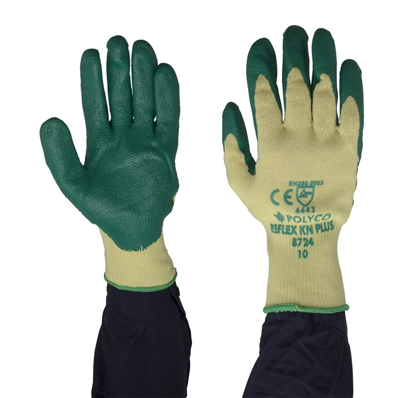 The Polyco Reflex KN Plus Kevlar Cut Resistant Gloves provide excellent cut resistance and feature a seamless knitted Kevlar liner with a flexible nitrile coating.