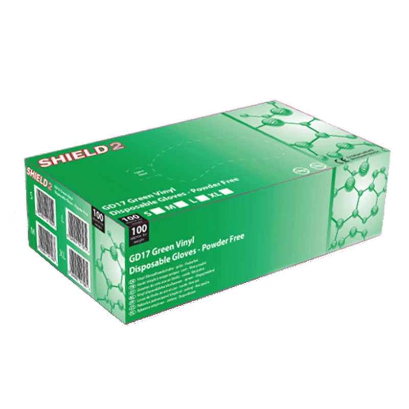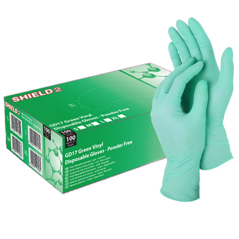 Shield2 GD17 Powder-Free Green Vinyl Disposable Gloves