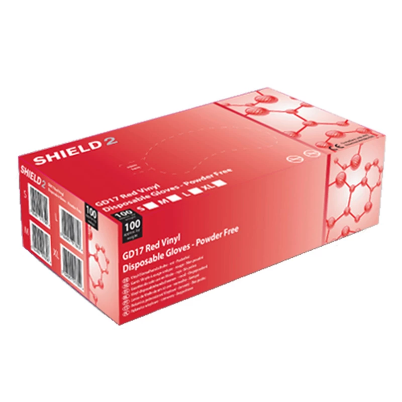 Shield2 GD17 Powder-Free Vinyl Red Disposable Gloves