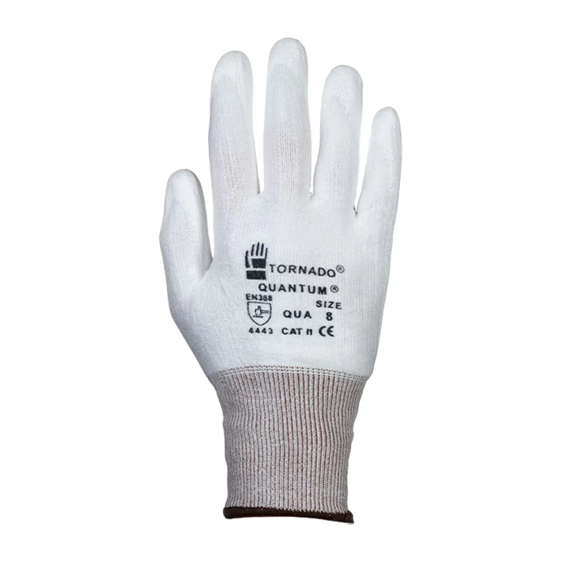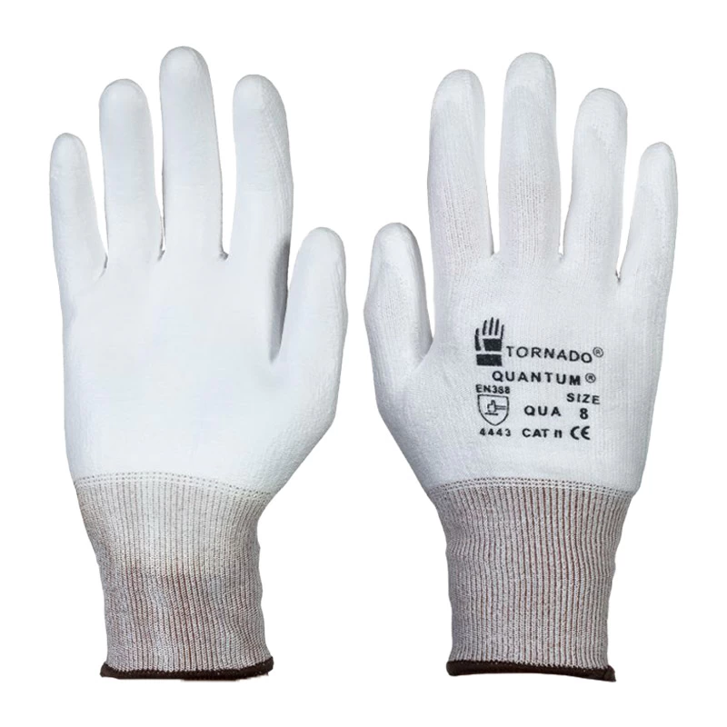 The Tornado Quantum Gloves feature a light polyurethane palm coating. This material ensures both a positive grip and additional resistance to abrasion, making the gloves suitable for extended use in repetitive assembly applications.