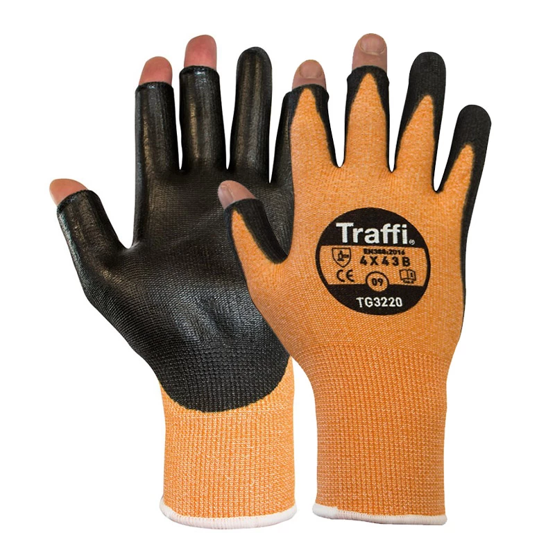The TraffiGlove TG3220 Cut Level B Exposed Fingertips Grip Gloves are designed for indoor handling tasks, as their three exposed fingers and PU coating enable outstanding grip. Impressive abrasion, tear and puncture resistance will protect the hands, while the lightweight design is perfect for extended use throughout the day.Ā