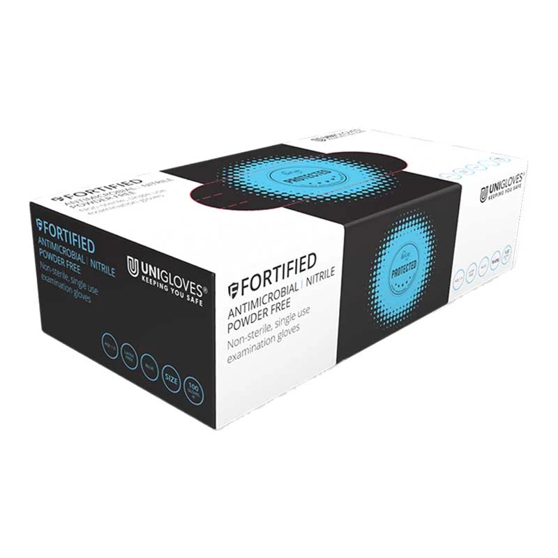unigloves GF001 Fortified Antimicrobial Blue Nitrile Gloves (PACK OF 100)