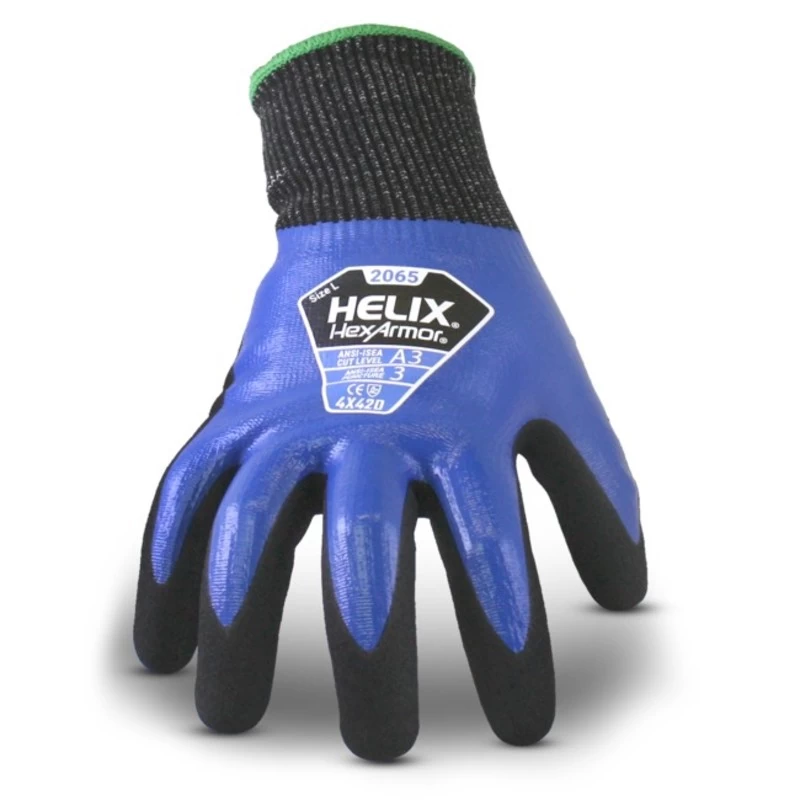 - Nitrile Grip: Coated with a sanded nitrile dip, the Helix 2065 greatly enhance wearer grip in wet, oily and greasy conditions